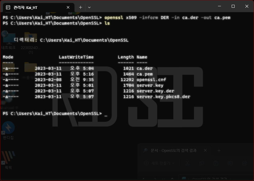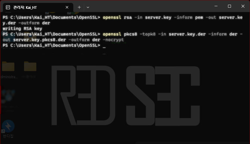 5. der 파일을 pem 파일로 변경해주는 명령어 입력