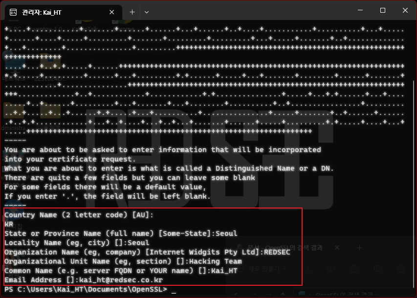 인증서 커스터마이징은 해당 명령어 이후 진행하게 된다.