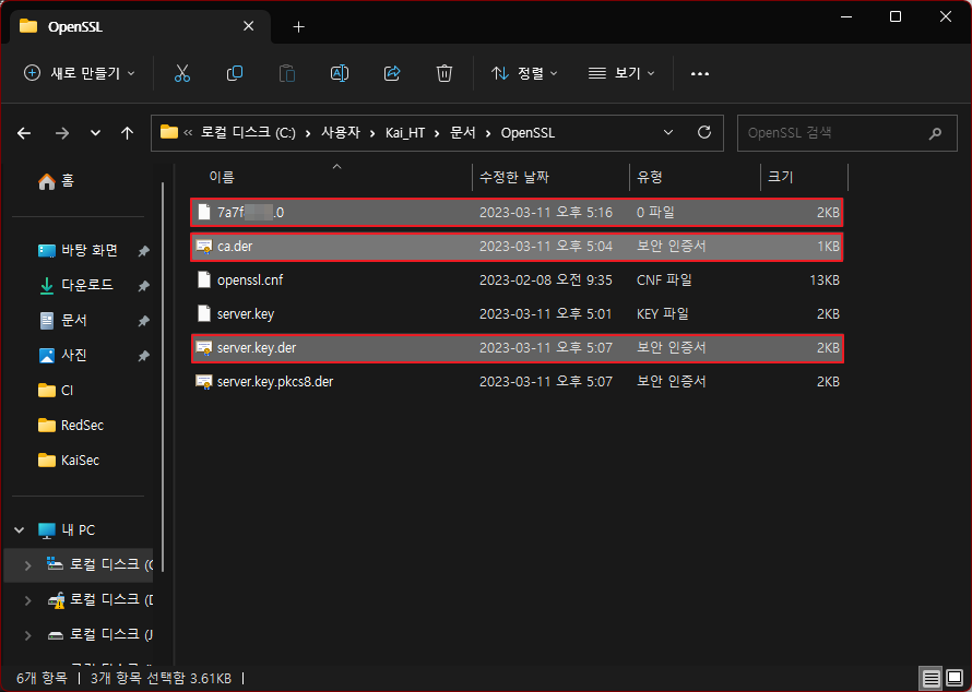 cd [해당폴더] // 인증서 다운로드 폴더로 이동