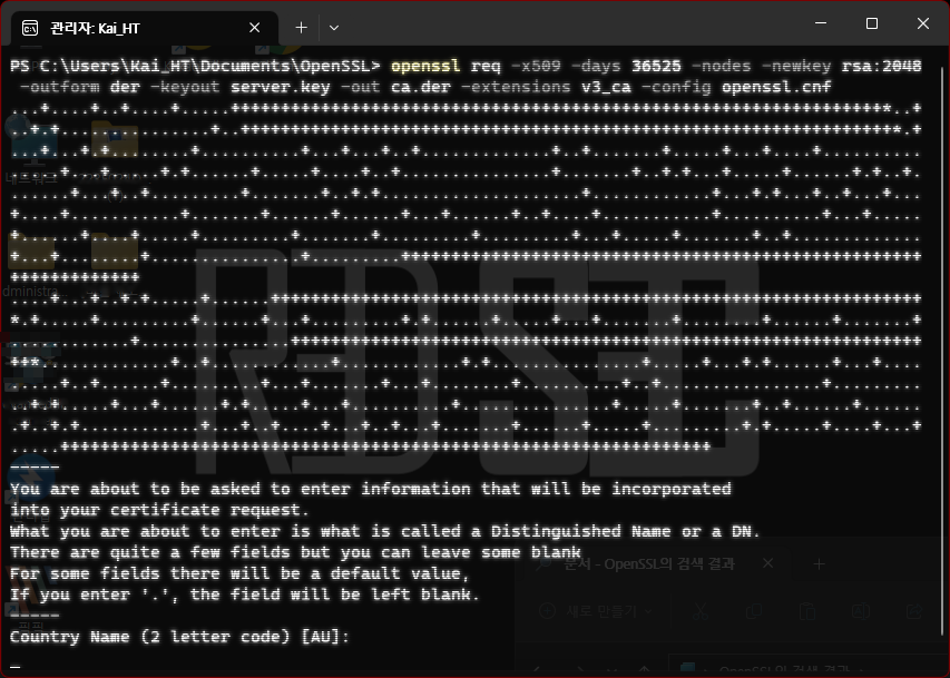 이후 인증서 키 파일 작성을 진행하기 위한 명령어를 입력해 준다.
