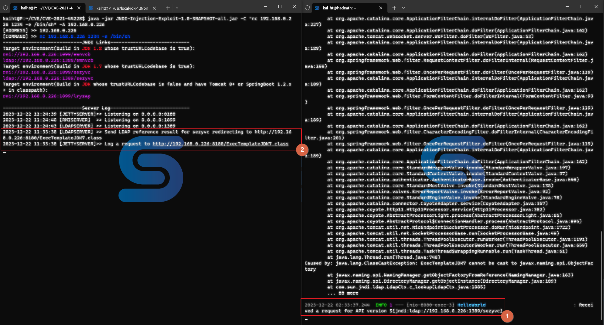 - 공격대상 서버 내 Log4j 프레임워크에서 ${jndi:~~} 키워드를 확인하고 공격자가 전달한 ldap://Hacker-LDAP-Server/Exploit 을 공격자의 LDAP서버로 질의(요청)한다.