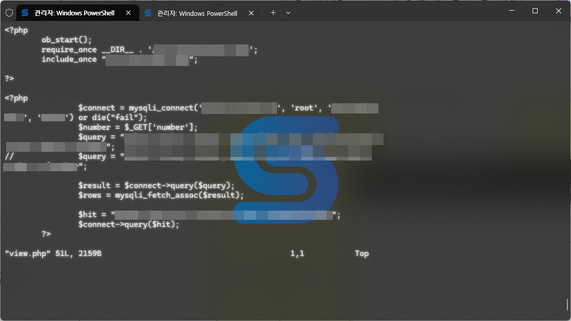 - 공격자는 서버 장악을 위해 업로드 취약점 구간을 이용하여 Webshell 형식 (명령 수행)의 쉘 파일 업로드를 수행함.