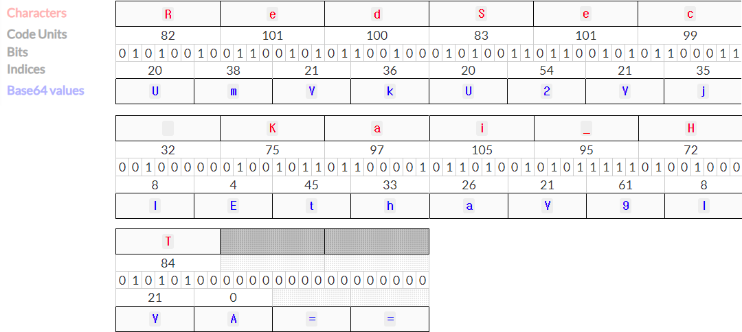 문자열 "RedSec Kai_HT" 를 인코딩하는 경우 아래와 같이 변환된다.
