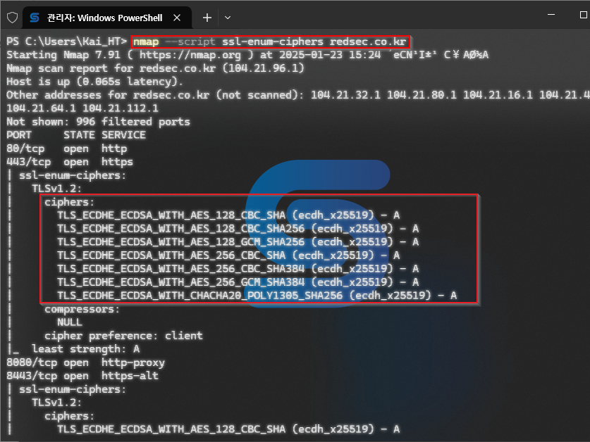 본인은 해당 취약점 확인 진행 시, 증적 생성 및 직관적 판단에 편한 것이 nmap 을 사용하는 것이라 해당 코드를 이용하여 진단 중에 있다.