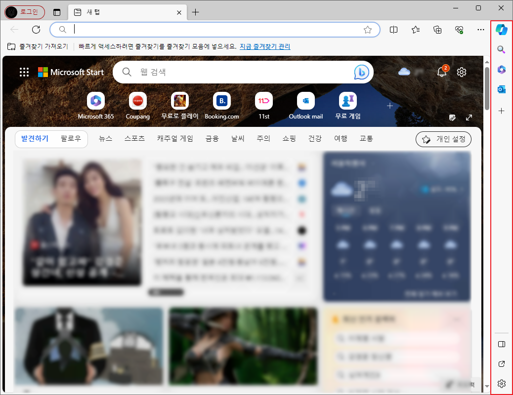 해당 기능을 끄고 브라우저를 껐다가 키게되면 우측 사이드바가 아예 없어진 것을 확인할 수 있다.