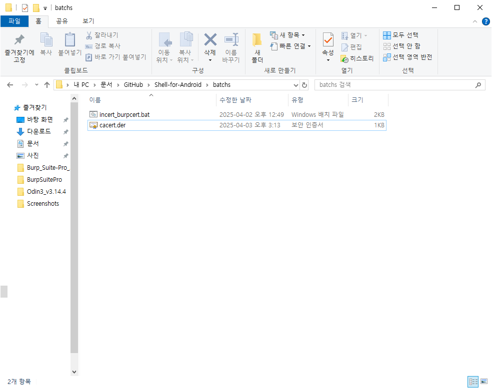 해당 인증서 파일을 깃헙에서 다운로드한 파일의 batchs 폴더 내 넣어주자.
