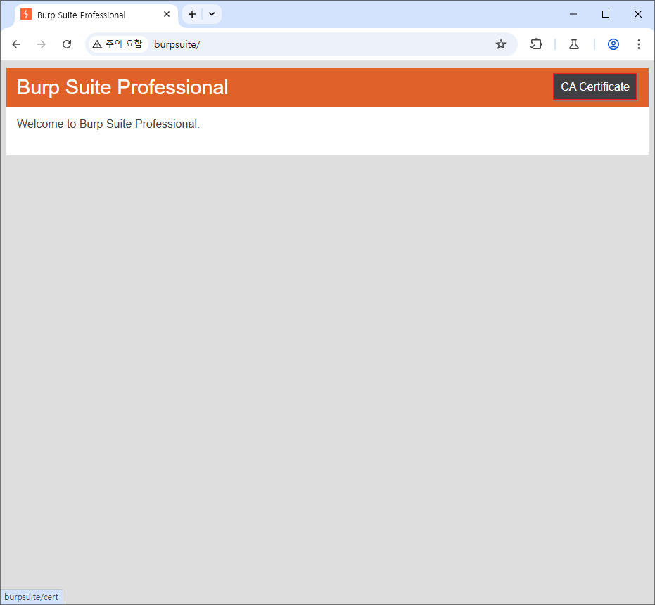 먼저 Burpsuite 를 실행시키고 http://burpsuite 페이지에 접근하여 버프슈트 인증서를 다운받아주자.
