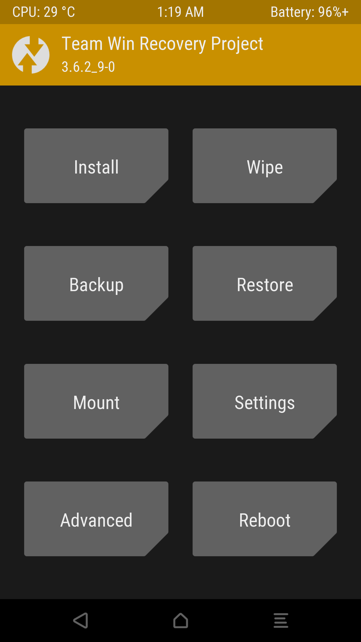 이후 TWRP 실행을 위해 디바이스에서 TWRP에 접근한다.