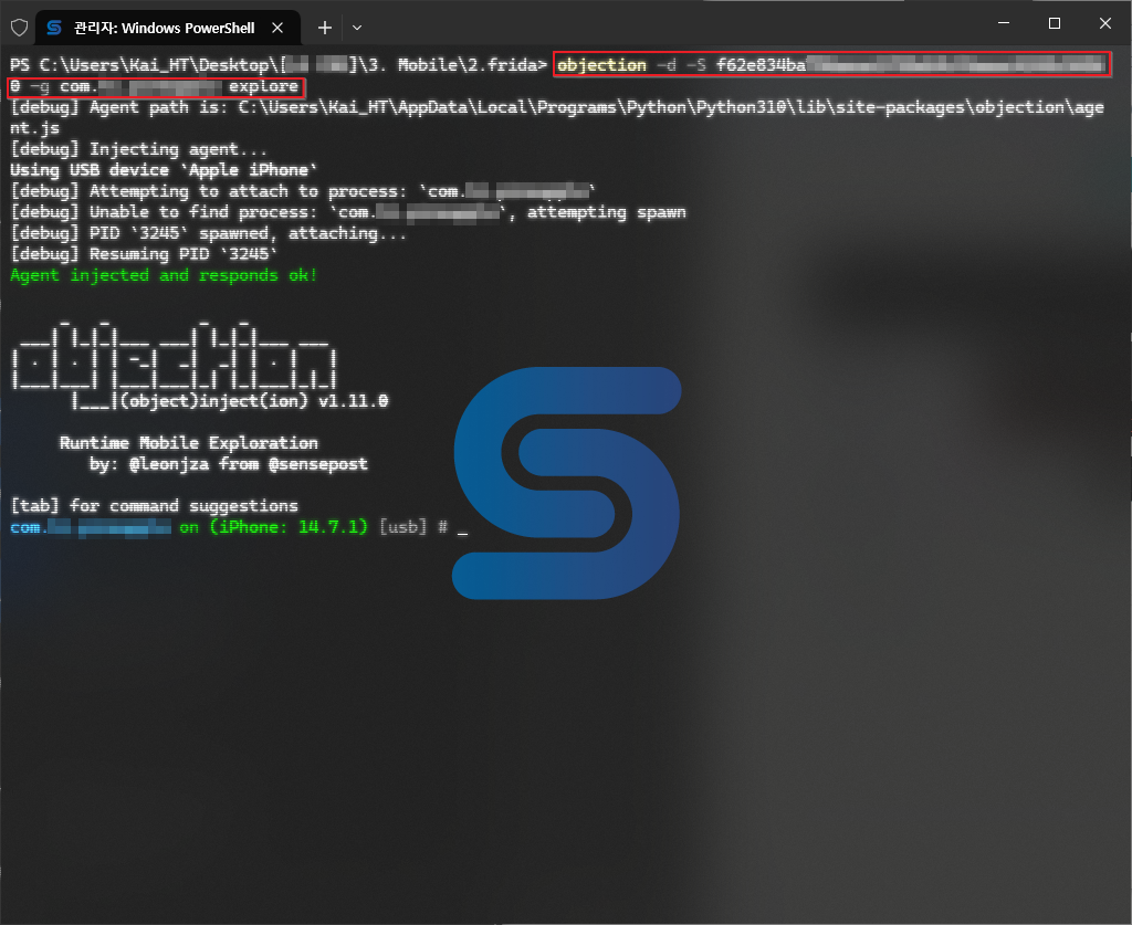Frida 모듈을 사용하는 툴인 만큼 Objection 도 동일한 기능을 하는 옵션을 제공하는데, 여기에서 사용할 옵션은 `-S` 옵션이다.