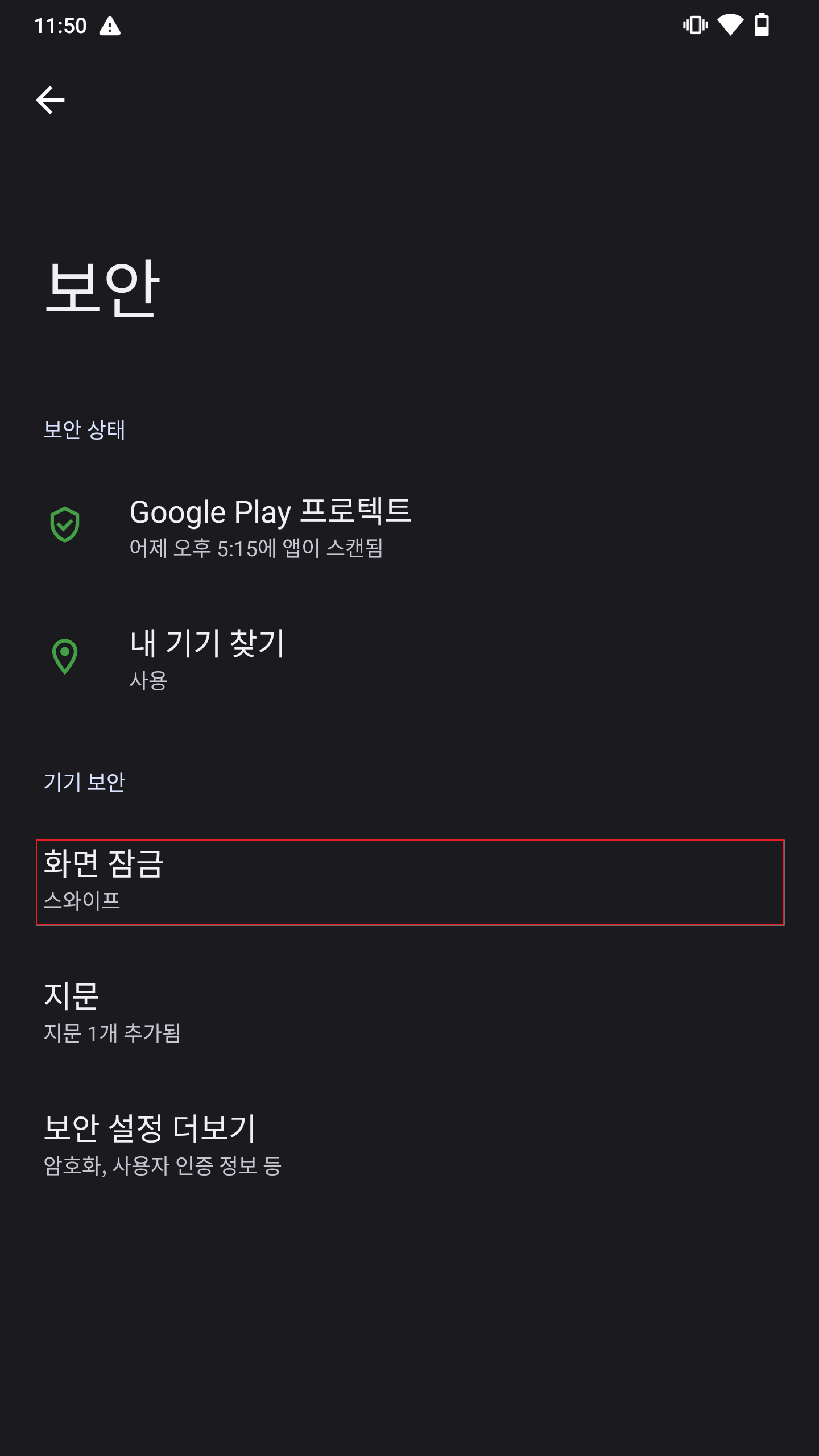 업데이트 이후 디바이스를 확인하보면, 이전에 사용하였던 잠금 정보로 잠금이 해제되지 않았다.