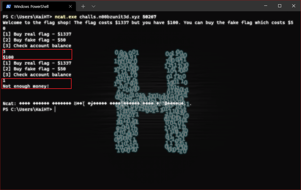 이다. Flag 구입 전에 우선 지갑에 있는 돈부터 확인해보자.