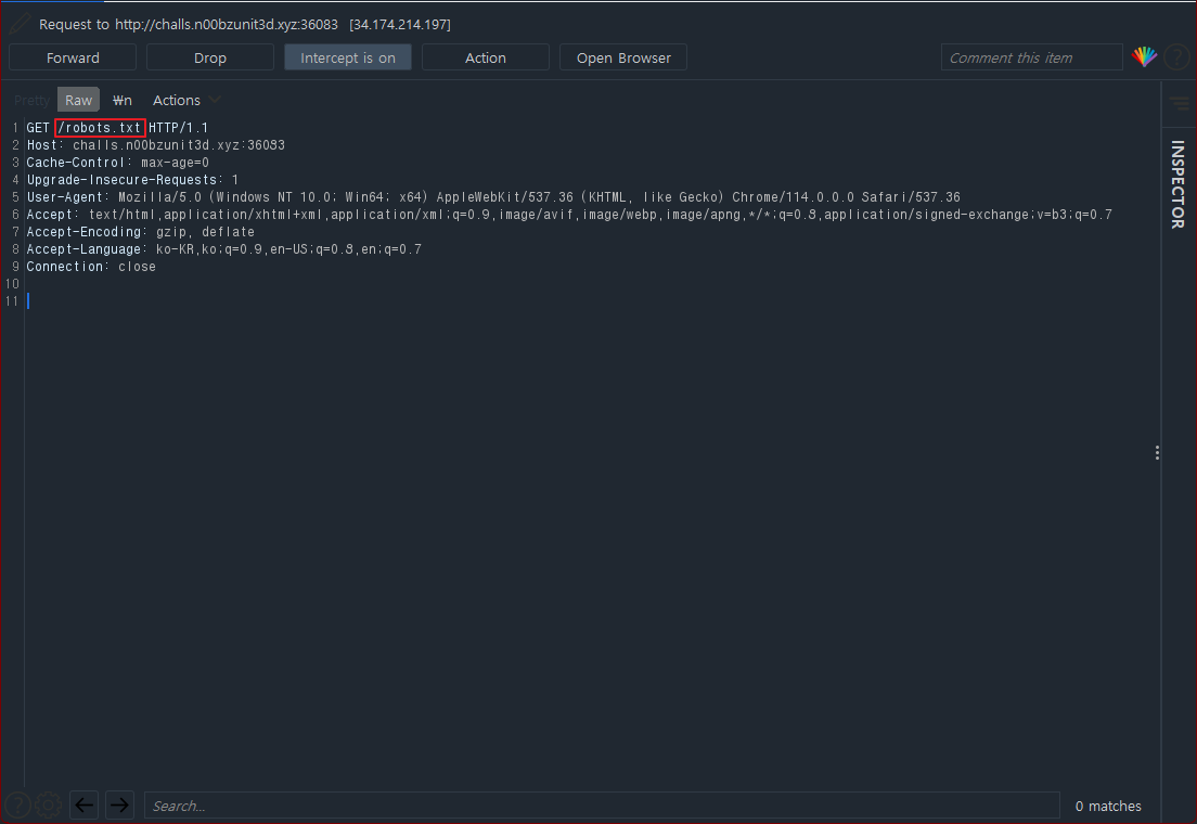 해당 문제는 웹 크롤러에 대한 접근제어 파일인 'robots.txt' 파일에 대한 정의를 알고 있다면 해결이 가능한 문제였다.