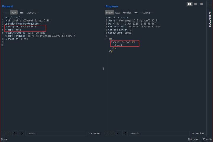 Accept 값을 변조하였더니 이번엔 Connection 값을 변조하라고 응답 값에 노출된다.변조하라고하면 해봐야지 뭐.