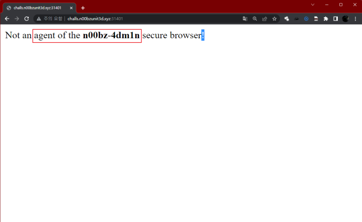 브라우저 내 화면을 확인하면 페이지 접근 클라이언트가 관리자가 아니며, 해당 페이지는 관리자만이 접근할 수 있다 메시지를 전달하고 있다. html 화면에선 해당 문장 이외 정보가 없어 패킷을 확인했다.